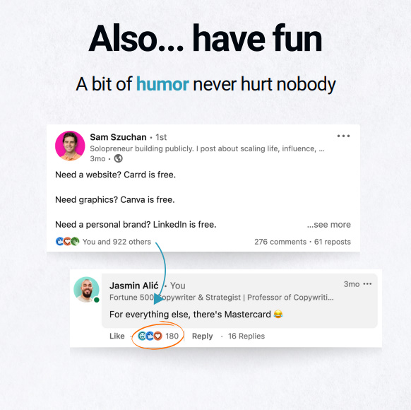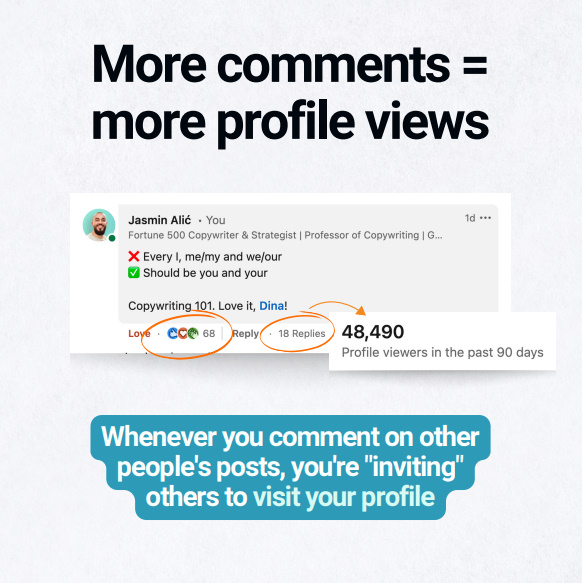 Just following you and applying your content led me to earn my first $1,000 on LinkedIn. Booking your Power Hour to optimize my profile led me to being fully booked in less than 2 weeks. So… Thank you, Jasmin. 😊